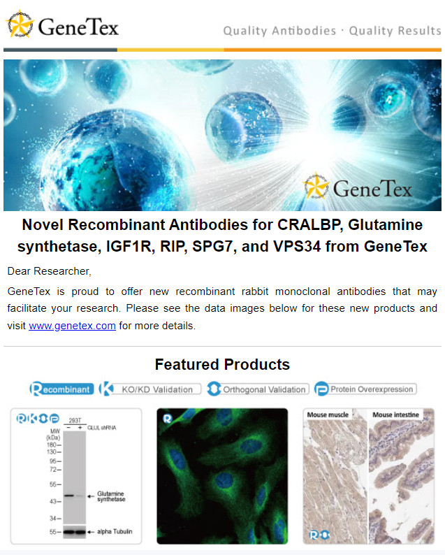 [GeneTex] New Recombinant Antibodies for Aromatase, FOXO3A, Histone H3K9me3, NeuN, RNase H1, and SERCA2 ATPase
